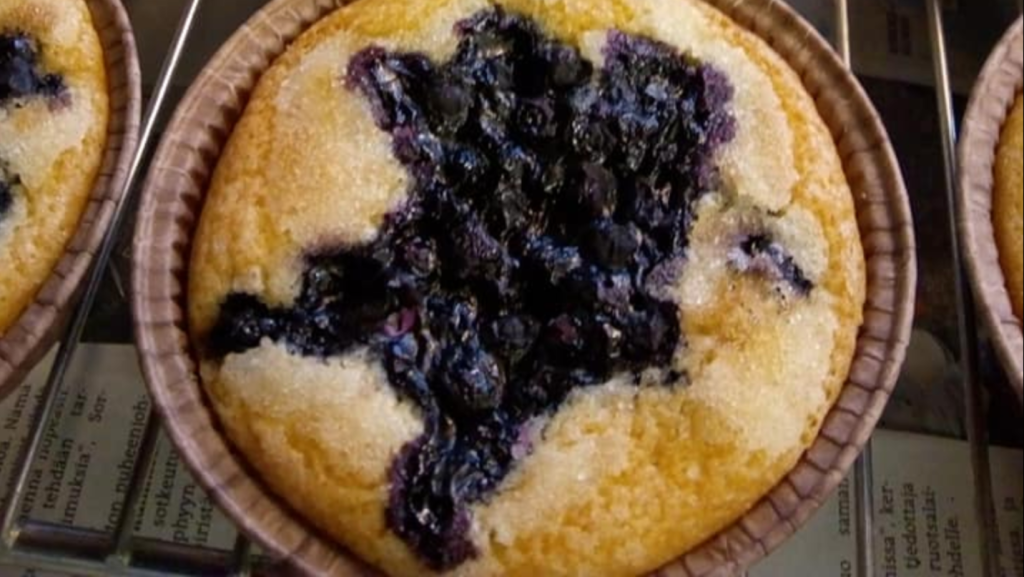 jauhoseos (riisijauho, tumma täysjyväriisijauho, maissijauho, perunajauho, psyllium), sokeri, KANANMUNA, laktoositon margariini (palmuöljy, rypsiöljy, vesi, suola, emulgointiaine (E322 auringonkukkalesitiini, E471), happamuudensäätöaine (E330 sitruunahappo), aromi, A-vitamiini, D-vitamiini), vesi, mustikka, leivinjauhe, ksantaani.