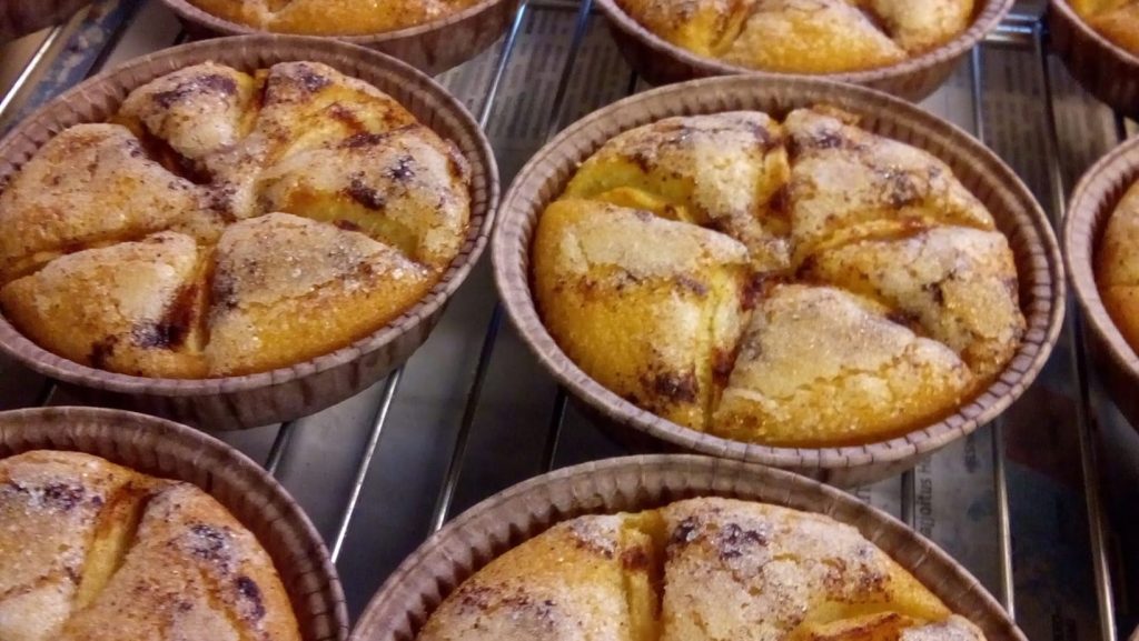 jauhoseos (riisijauho, tumma täysjyväriisijauho, maissijauho, perunajauho, psyllium), sokeri, KANANMUNA, laktoositon margariini (palmuöljy, rypsiöljy, vesi, suola, emulgointiaine (E322 auringonkukkalesitiini, E471), happamuudensäätöaine (E330 sitruunahappo), aromi, A-vitamiini, D-vitamiini), vesi, omena, kaneli, leivinjauhe, ksantaani.